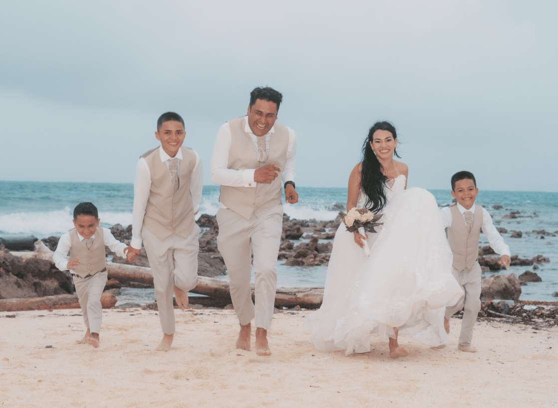 Una boda en la playa guiada por un pastor de la isla Incluye intercambio de argollas, intercambio de votos y ceremonia simbólica de la arena.